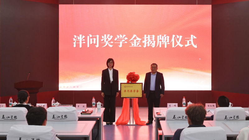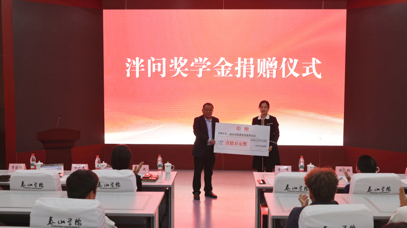 科研处主要负责人代表学校教育发展基金会与捐赠人士签署捐赠协议,李峰接受捐赠支票、与李波一同为“泮问奖学金”正式揭牌,现场掌声雷动,见证这一意义非凡的时刻。