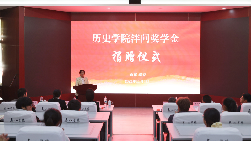 金秋送爽,文脉传薪。11月4日,历史学院在虚拟仿真中心A1004举行“泮问奖学金”捐赠仪式。泰山学院党委委员、副校长李峰,中国农业银行泰安分行党委书记、行长李波,中国农业银行山东研修中心副主任侯仁锋,中国农业银行泰安分行万广青,科研处主要负责人、历史学院领导班子、教师代表、辅导员和学生代表60余人参加活动。