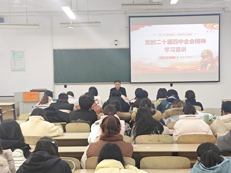 11月20日,历史学院党委副书记、院长聂立申在1号综合楼A4008教室,为学院2023级学生讲授专题思政课,全面解读党的二十届四中全会精神。