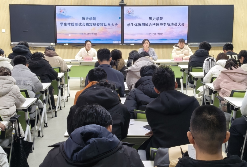 为深入贯彻《国家学生体质健康标准》要求,切实提升学生体质健康水平,助力全体学生顺利通过体质测试,确保达标率稳步提升,1月4日下午,历史学院在校本部一号综合楼A4007召开学生体质测试合格攻坚专项动员大会。学院党委负责人、辅导员及体测不合格学生参会。